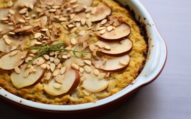 Осіння запіканка із пшоном і гарбузом з додаванням груші, кориці й мигдалю — це ідеальний сніданок для прохолодної погоди або легка й солодка вечеря.
