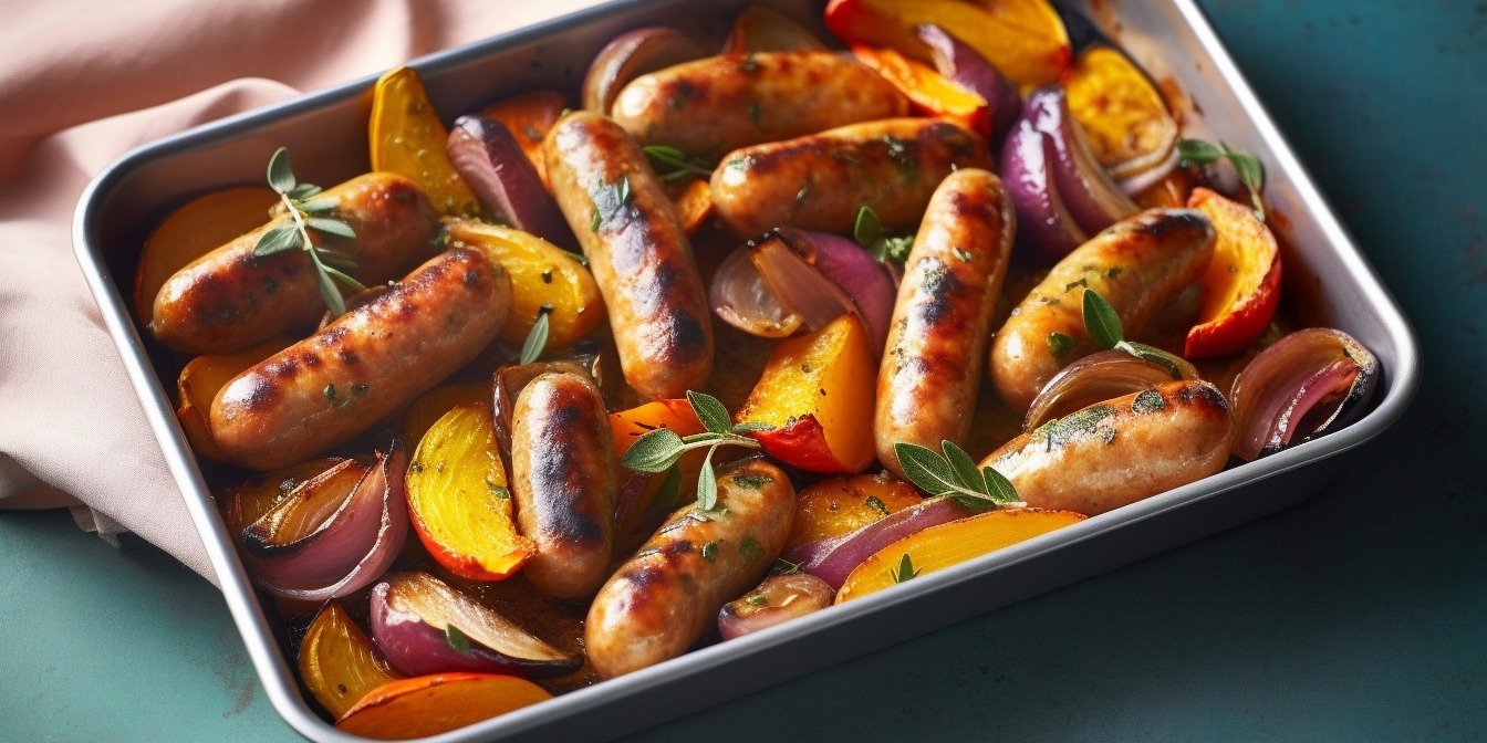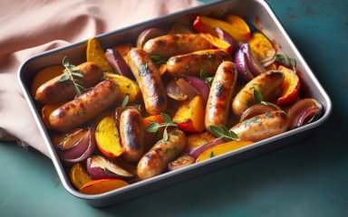 Поверніть у духовку на 10 хвилин, поки ковбаски не підрум’яняться і не просмажаться, а овочі не стануть м’якими. Посипте петрушкою та подавайте.