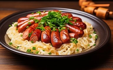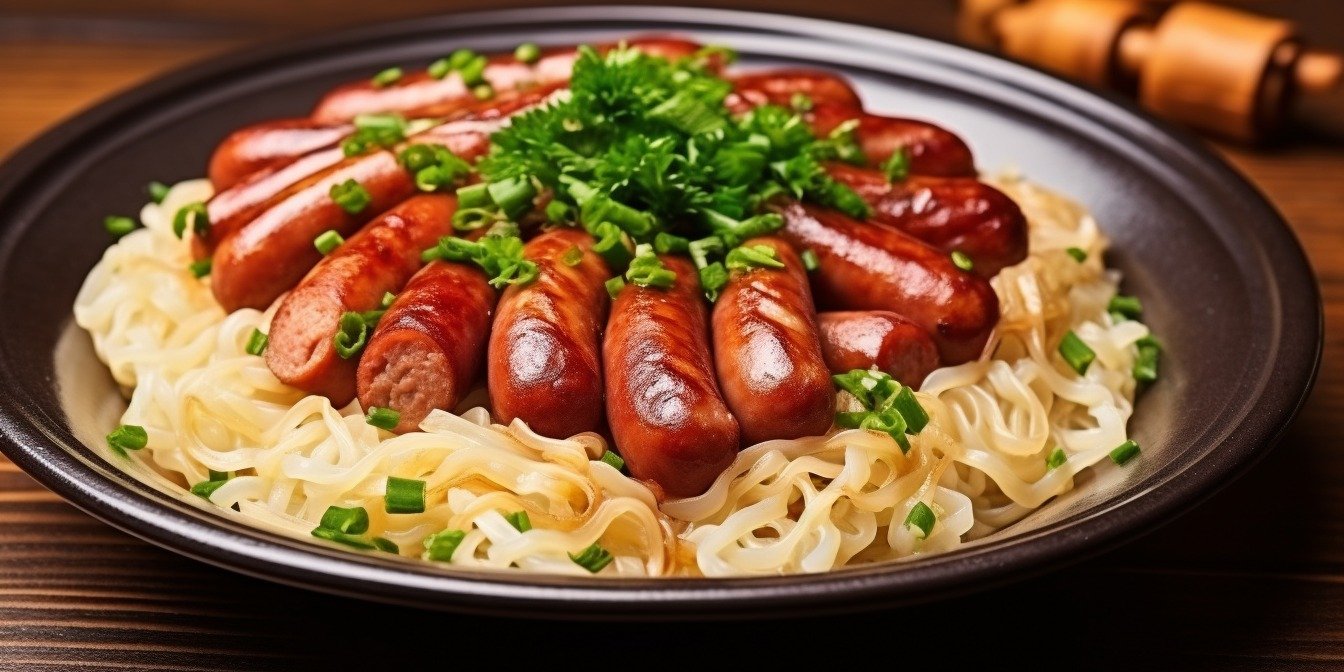 Покладіть вермішель швидкого приготування до сосисок, накрийте кришкою та дайте покипіти 5 хвилин. Потім додайте спеції, перемішайте та дайте закипіти ще раз.