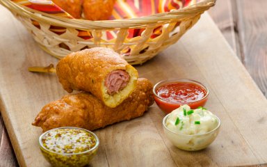 Зазвичай ми просто відварюємо сардельки до пюре чи каші. Але з ними можна приготувати й лінивий варіант популярної вуличної їжі — київської перепічки чи сосисок у тісті. Готується все 5 хвилин.