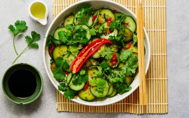 Приготуйте дуже смачний і неймовірно простий у приготуванні азійський огірковий салат від гастроентузіастки Аврори Огородник. Потрібен огірок, зелень, оцет, олія і трішки перчика чилі. Цей салат — ідеальне доповнення до риби, м’яса чи рису.