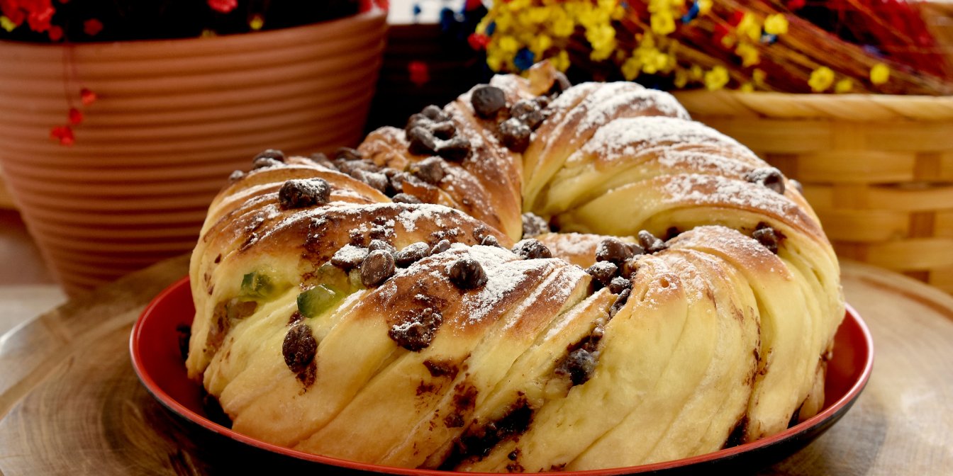 Ця булка настільки гарна, що викликала фурор у соцмережах. Вона готується на дріжджовому тісті з додаванням сухофруктів і цукатів. Для аромату додаємо трохи рому.