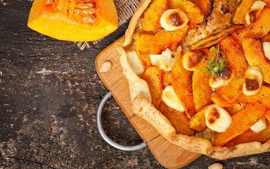 Тонка й хрумка основа з тіста, смачна гарбузова начинка з цибулею пореєм та дрібкою пармезану — це справжня осіння смакота.
