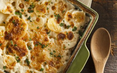 Подавайте гратен дофінуа на гарнір до запеченої риби або до ніжних м’ясних биточків.