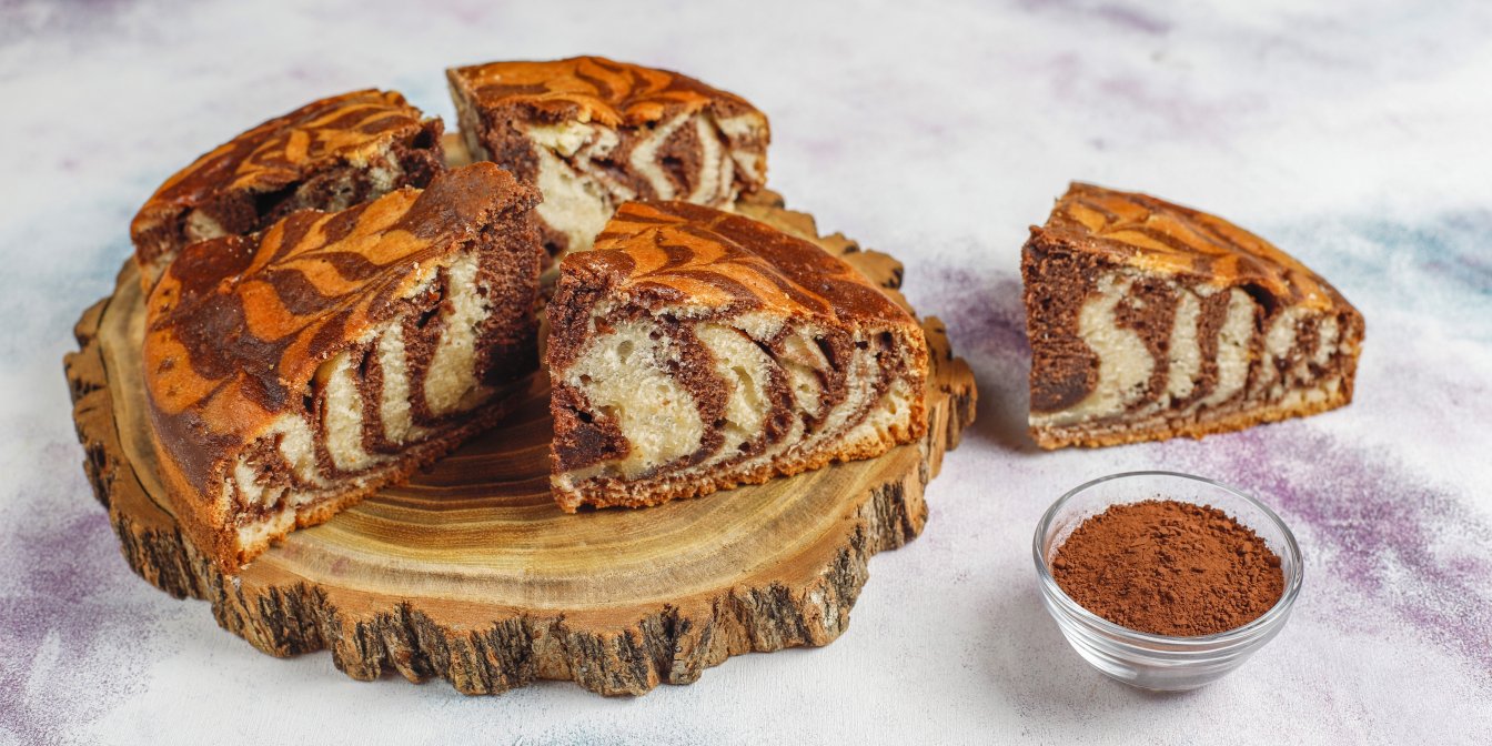 Тісто для манника замішується на олії без запаху та кефірі. В одну частину тіста потрібно додати какао. «Зебра» формується просто, за допомогою столової ложки.