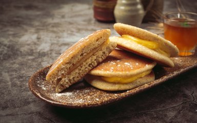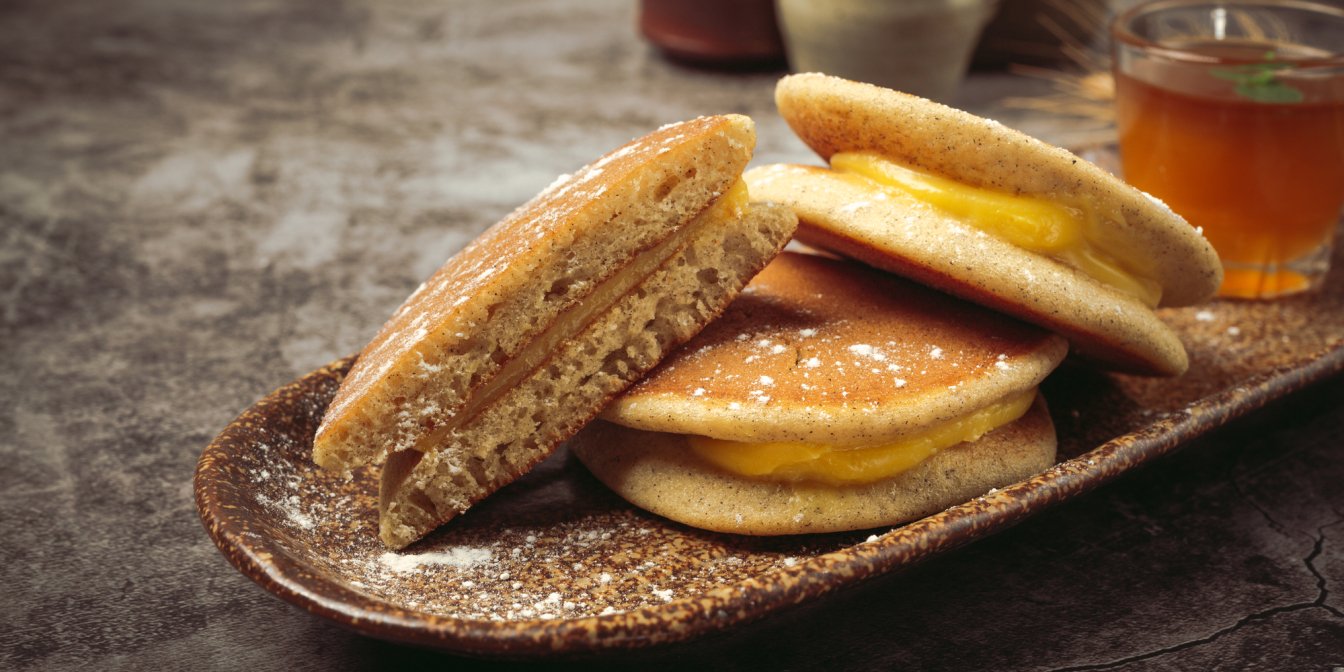 Дораякі — це традиційні японські млинці, наповнені кремом із бобів адзукі. Ми пропонуємо їх із солодкою начинкою, карамеллю, але ці м’які солодощі також можна наповнити шоколадною пастою, заварним кремом або джемом.