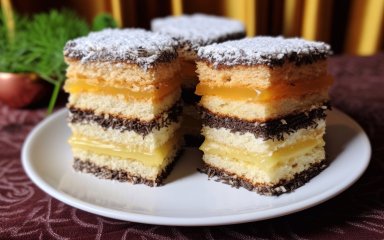 - Багатошаровий пляцок із сиром та маком