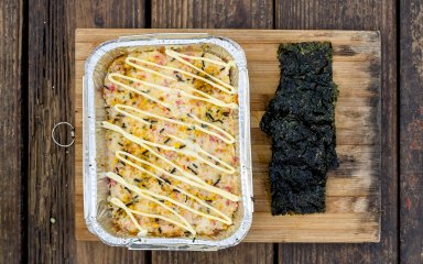 Чого тільки не вигадають люди, щоб зекономити час та енергію! От, наприклад, суші. Якийсь геній придумав не загортати роли, а перемішати й запекти начинку, а потім їсти її зі шматочками норі, немов з лавашем!