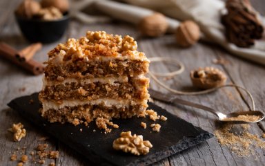 У цьому тортику варте уваги все: і коржі із додаванням какао й горіхів, і крем зі згущеним молоком, вершковим маслом і халвою. Цей солодкий ансамбль зможе прикрасити ваш різдвяний або новорічний стіл і побавити вас і гостей.