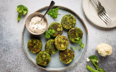 Ці оладки з цвітної капусти стануть фантастичним обідом або гарніром. Подрібнену цвітну капусту, часник, свіжу зелень, яйця, сметану, борошно і спеції потрібно спочатку перебити в блендері, а потім з готової маси насмажити оладки з золотистою скоринкою. І не забудьте про соус!