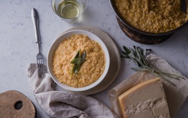 Ризото — вишукана італійська страва, що народилася у середні віка в італійському регіоні Ломбардія. З плином часу страва стала популярною не тільки в Італії, а й у всьому світі, завоювавши серця гурманів своїм особливим смаком, ніжною текстурою й неповторною атмосферою затишку, що завжди супроводжує трапезу. Всесвіт ризото містить безліч варіантів, починаючи від класичного ризото алла міланезе з шафраном і пармезаном, до більш різнобічних комбінацій з морепродуктами, грибами, гарбузом або спаржею.