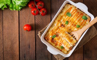 Млинці викладаються у форму й запікаються під бешамеллю. Це один з найвідоміших соусів Франції. Його можна зробити й до інших страв та зберігати в холодильнику декілька днів.