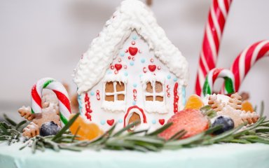 Один і головних символів зимових свят — пряникові будиночки. Сьогодні їх легко зібрати у домашніх умовах. Усередині невеликого кафе Stopio у місті Нарберт, Велика Британія, зробили їстівну експозицію з різних солодощів у вигляді справжньої стіни пряничного будиночка.