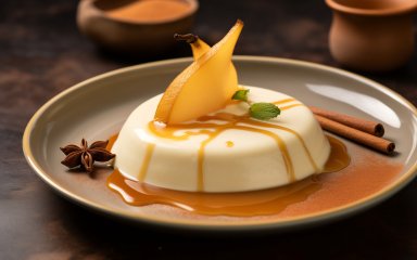 Шеф-кухар Марко Черветті розкриває секрети сучасного переосмислення чудового десерту пана-кота в солоному варіанті — із пармезаном та карамелізованою у вині грушею.