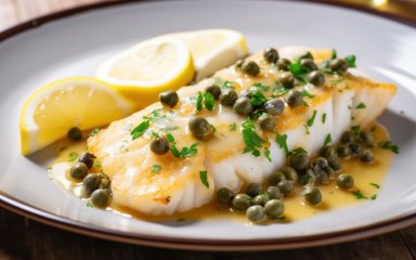 Морський окунь відомий своєю соковитою, маслянистою текстурою та ніжним смаком з природним відтінком солодкості. Соус із лимонів і каперсів доповнює смак риби гострими, солоними та пікантними нотками.