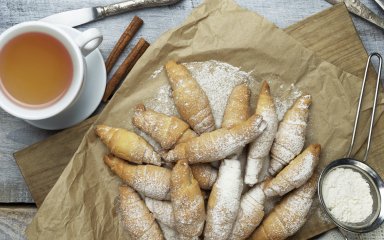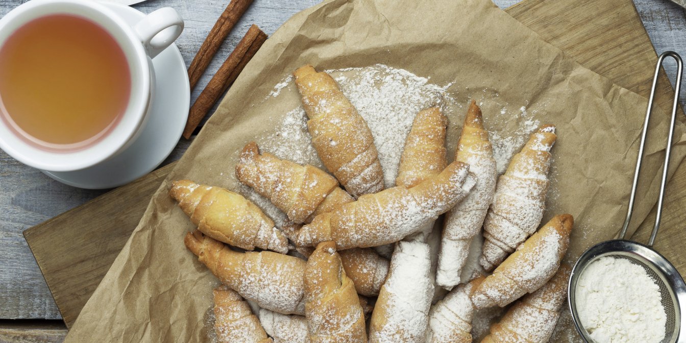 Ведуча каналу «Кулінарні рецепти від Надії» ароматизує тісто ванільним цукром і щедро обсипає гарячі рогалики цукровою пудрою. Виходить смачно і по-святковому ошатно. Але якщо ви робите печиво, що має зберігатися декілька днів, залиште його без пудрової посипки, тому що вона може змокріти.