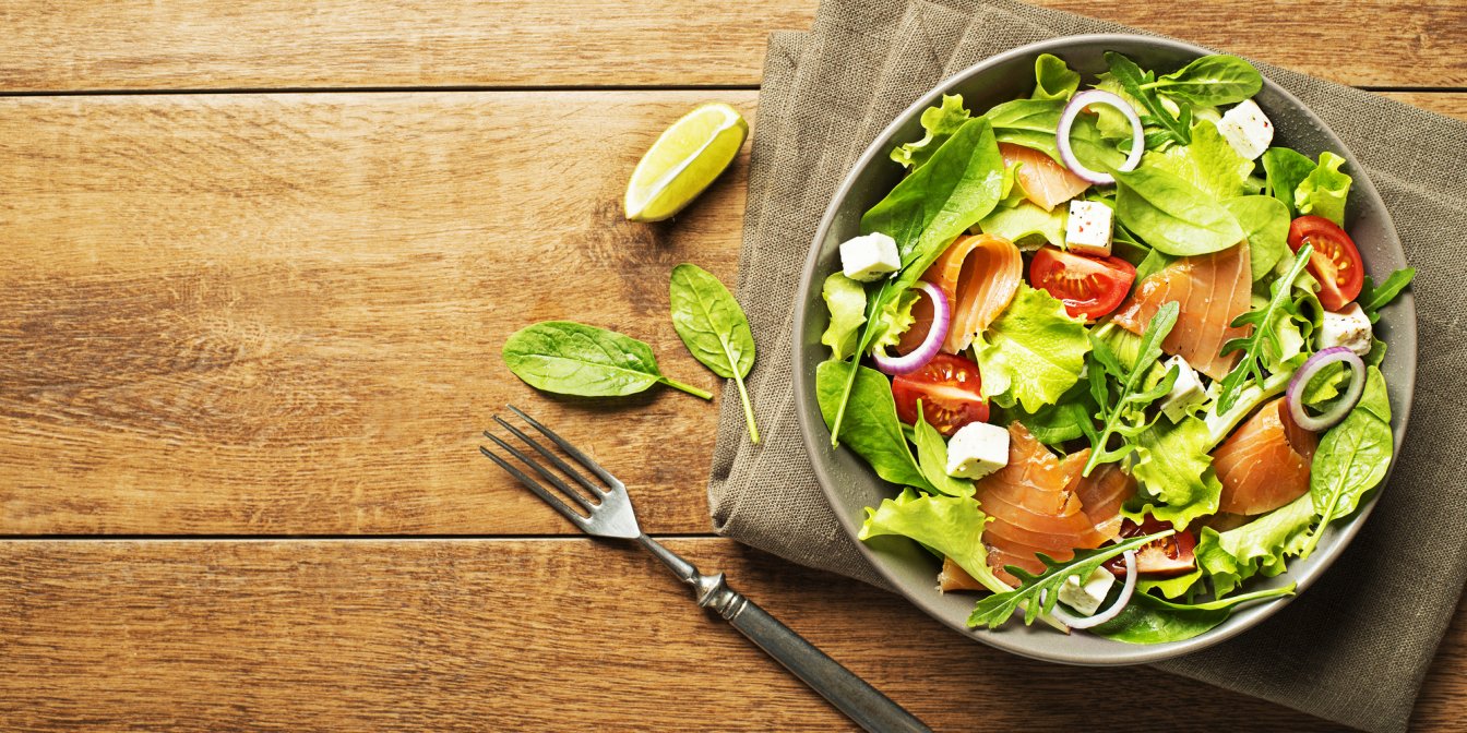 Насправді, немає нічого складного в тому, щоб приготувати довершену страву з простих доступних інгредієнтів. Ми пропонуємо поєднати лосось, салат, яйце та сир, доповнити помідорами чері та заправити соусом на основі гірчиці та майонезу (останній, до речі, можна приготувати вдома за цим простим рецептом від шефа). І ось перед вами вже не радянський салат, що набив оскомину, а цікава багатогранна страва до новорічного столу, приготована максимум за 20 хвилин! Прекрасним доповненням стане червона цибуля, а замість листя салату можна використати руколу зі шпинатом.