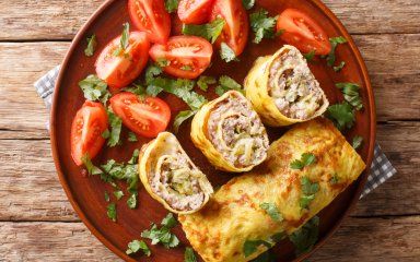 Рекомендуємо приготувати на сніданок млинці з куркою та сиром, смажені в яйці.