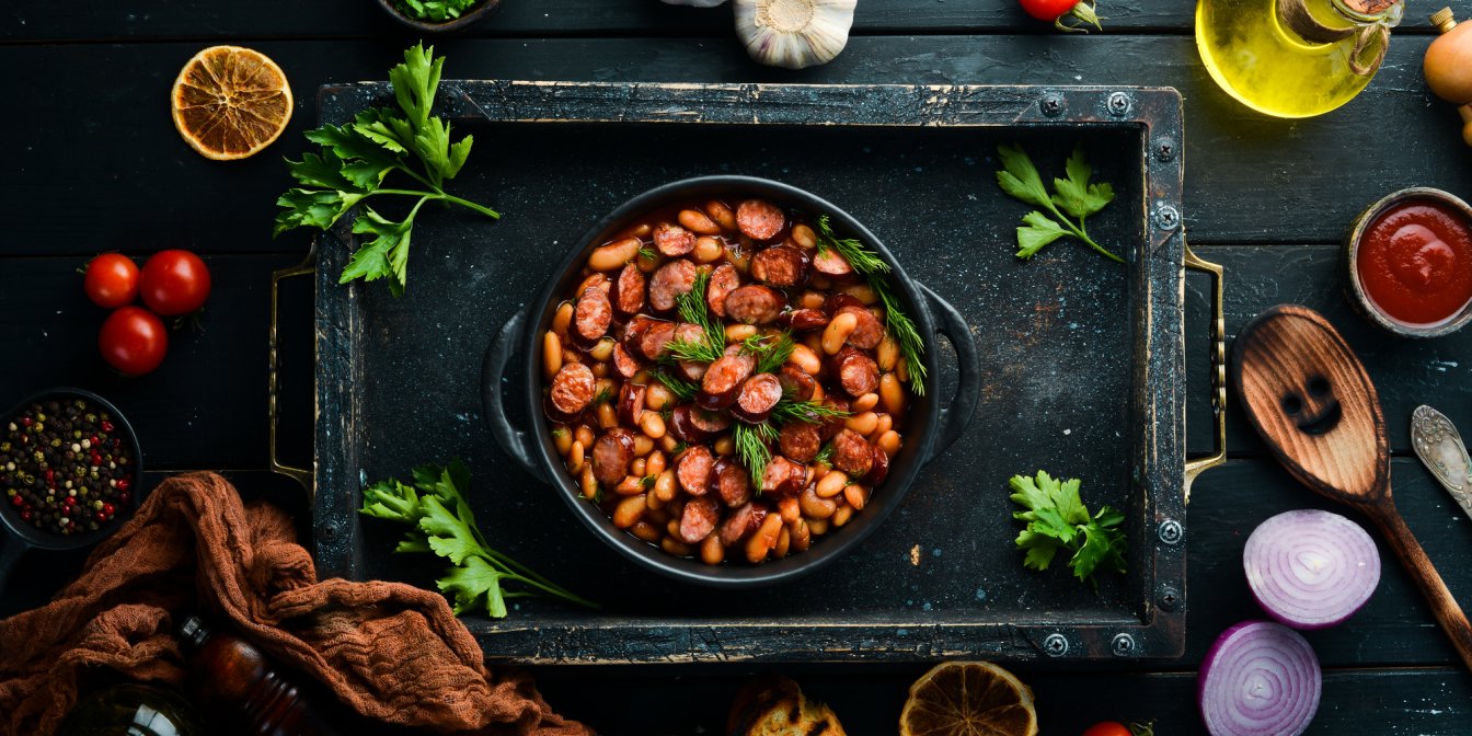 Квасоля з ковбасками на сковороді — ситна вечеря за 20 хвилин