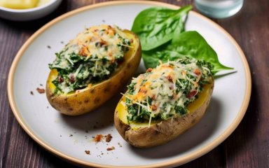 От Джеймі Олівер, наприклад, пропонує нафарширувати половинки картоплі сумішшю шпинату, сиру і червоного перцю, а потім запекти. Обіцяє, що буде дуже смачно. Страва до того ж вегетаріанська та не містить глютену. Готуймо?