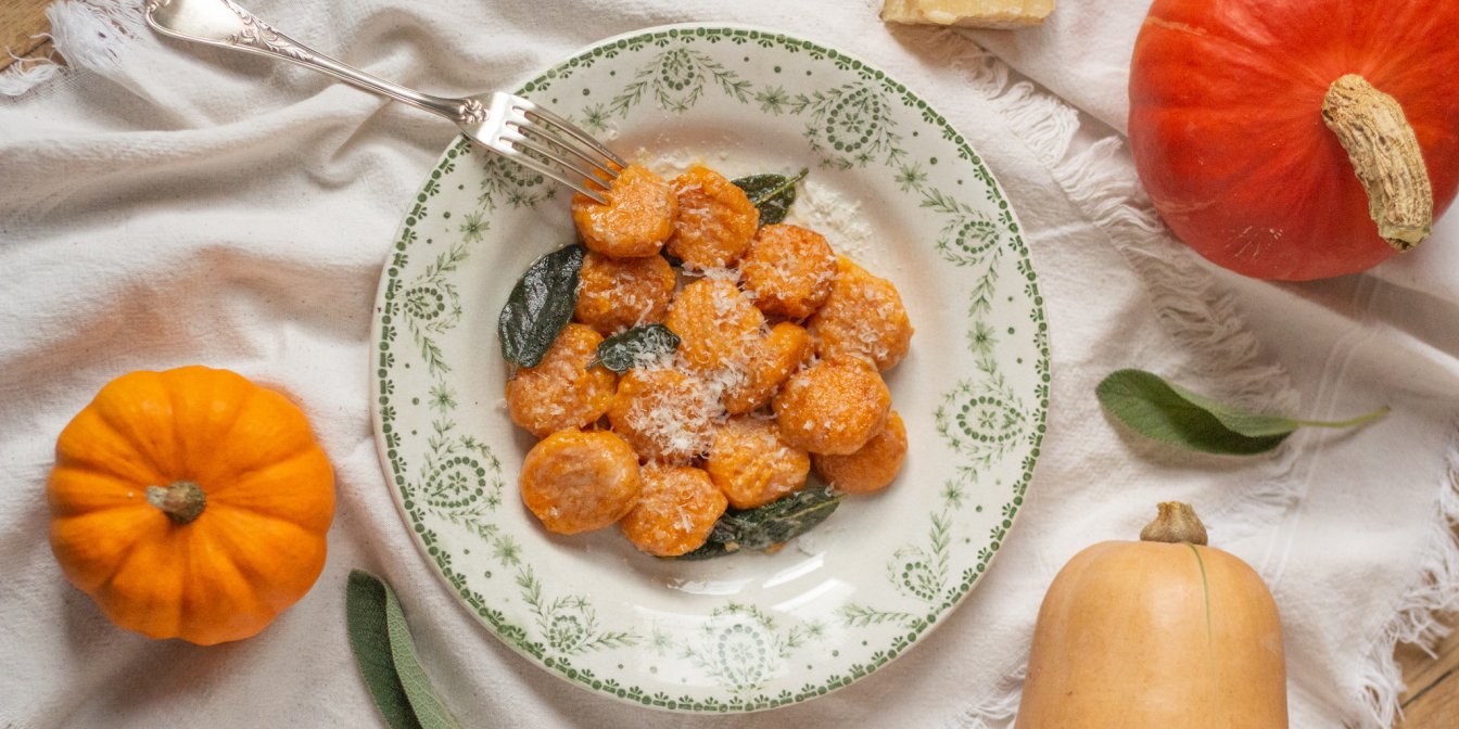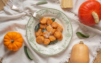 Ньокі нагадують мені маленькі гарбузові хмаринки, що тануть у роті, адже вони дуже ніжні. За консистенцією ньокі можна порівняти з лінивими варениками або галушками, тільки набагато ніжніші. Аромат хрусткої, смаженої у вершковому маслі шавлії робить страву вишуканою.