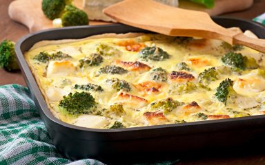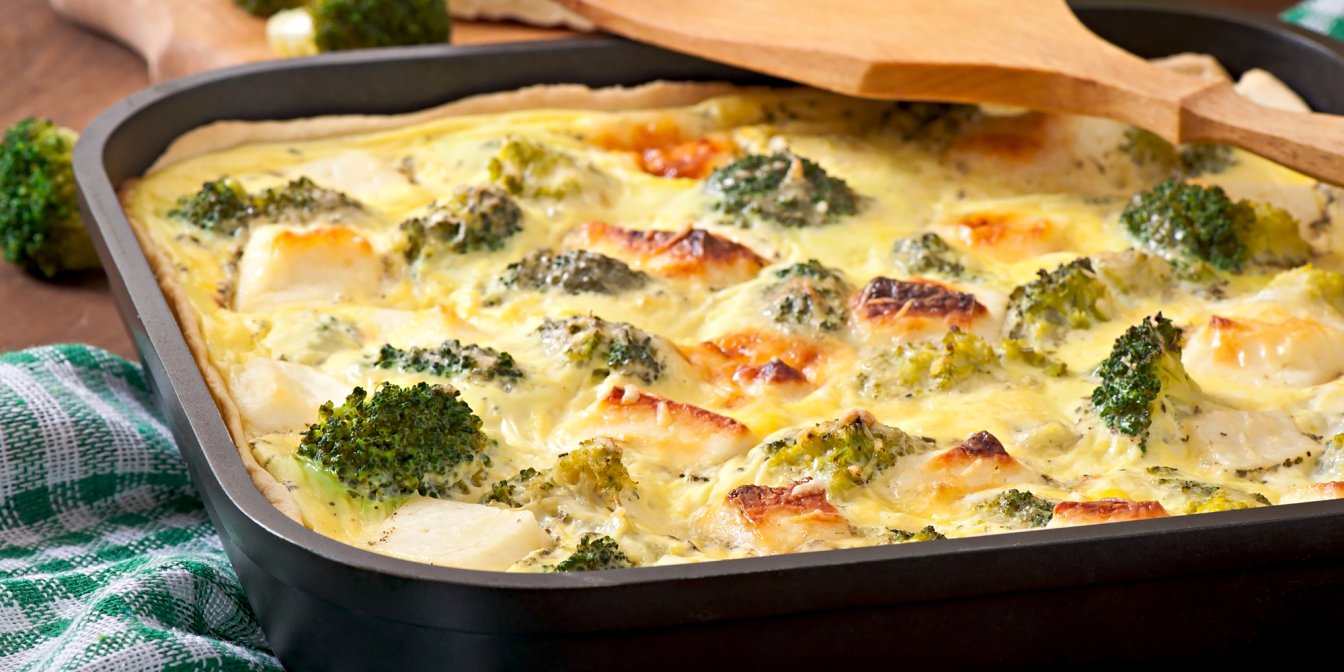 Заливний пиріг з минтаєм і броколі