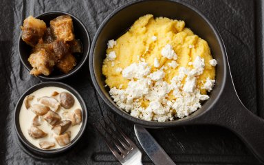 Заправляють банош бринзою, шкварками або грибами — страва виходить досить жирною та ситною і, як ще кажуть, багатою.