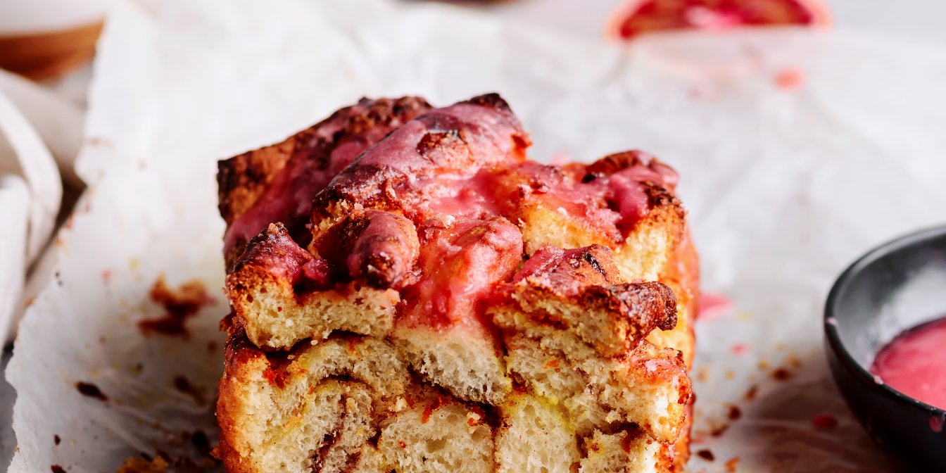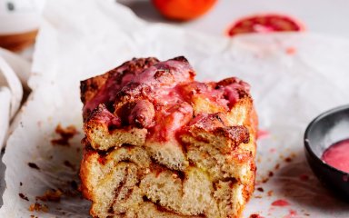 Для глазурі вичавити сік і червоного апельсина, прогріти його та збити з цукровою пудрою. Готову плетінку остудити у формі на решітці, дістати і полити глазур’ю.