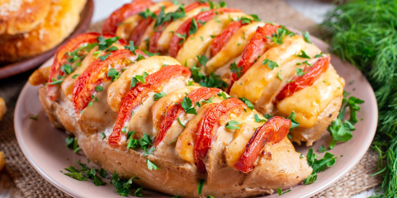 М’ясна гармошка: рецепт курячого філе, запеченого з моцарелою та соусом песто