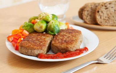 Сформувати котлети, обваляти в панірувальних сухарях і трохи приплюснути. Смажити на добре розігрітій сковороді по декілька хвилин з кожного боку до золотавого кольору.
