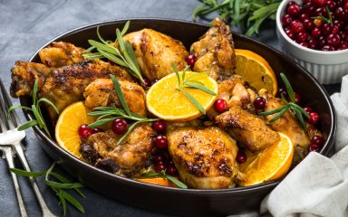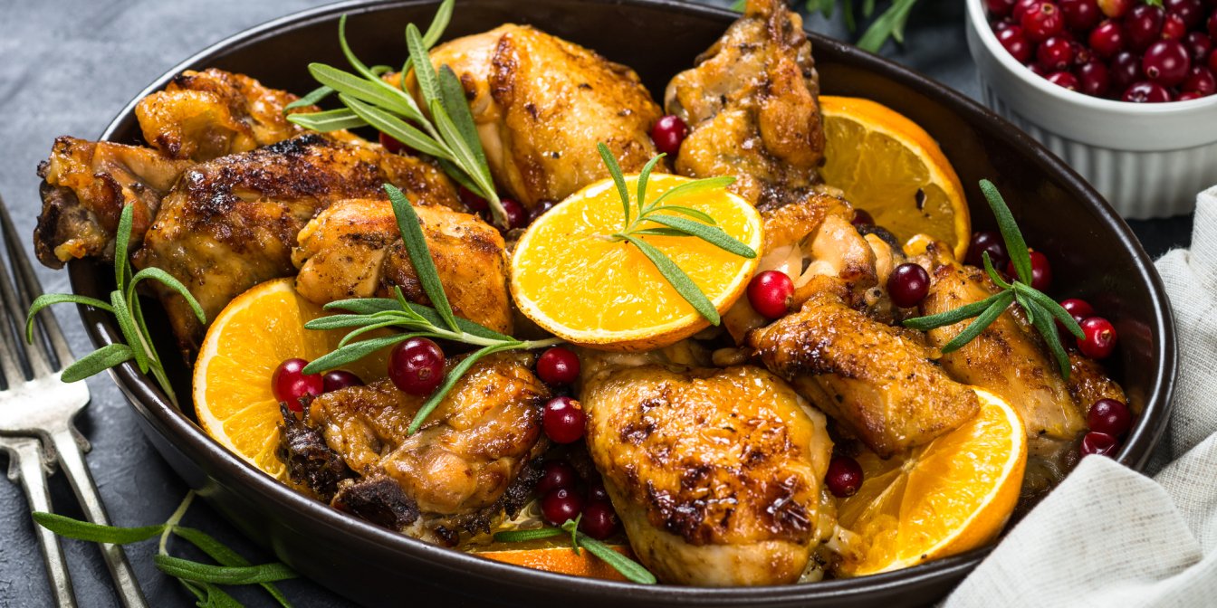 Курячі стегенця, запечені із журавлиною й апельсином — неповторна зимова вечеря
