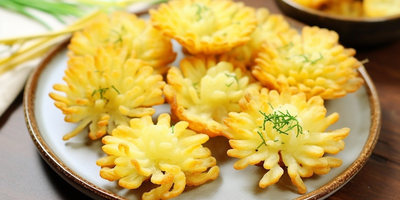 Здавалось би, здивувати когось картоплею уже просто неможливо. Але ж ні, навіть цей продукт досі може підносити сюрпризи. Так із картоплі можна досить швидко приготувати незвичайний снек для гостей. Це не чіпси і не фрі, а дещо зовсім нове — картопляні «квіти». Або їжачки. Або медузи. Тут уже кому що підкаже фантазія.