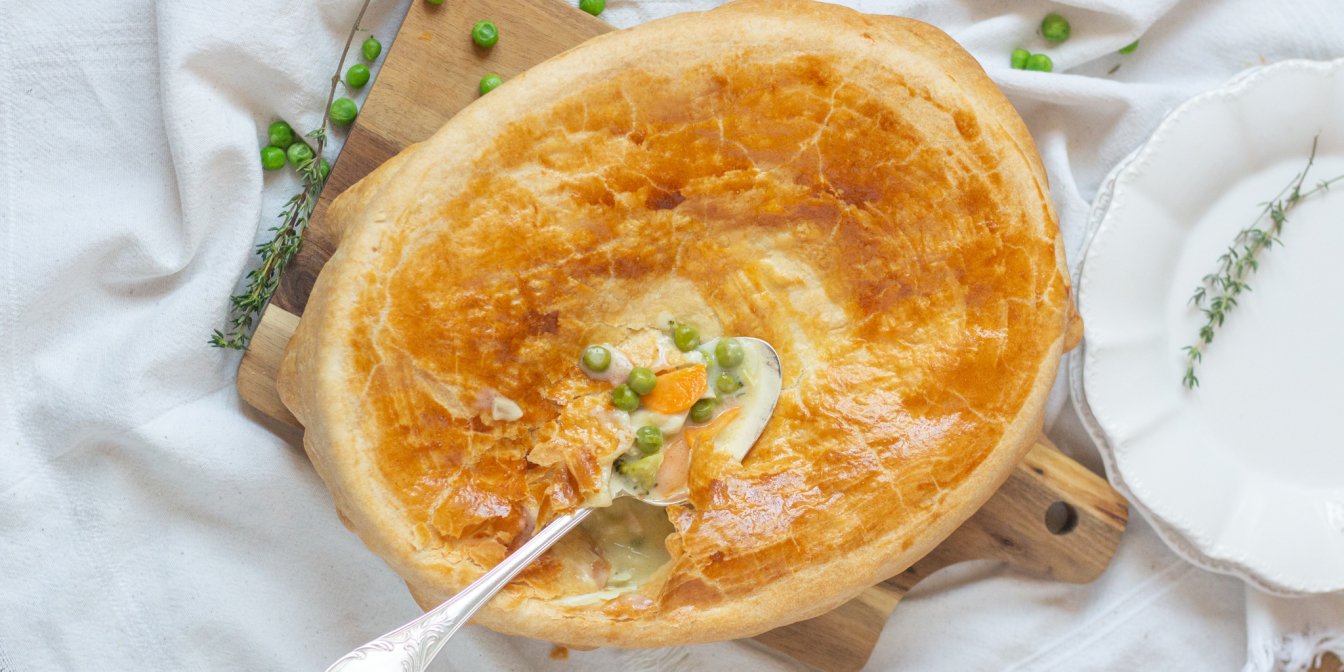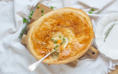 Англійський пиріг з куркою — це неймовірно смачна страва для зимових обідів, коли за вікном прохолодно, і хочеться зігрітися. Запашна начинка покривається листковим тістом і запікається у духовці. А ще цей курячий пиріг чудовий тим, що в нього можна покласти безліч овочів, які потім із задоволенням з’їсть уся родина, навіть не помітивши цього.