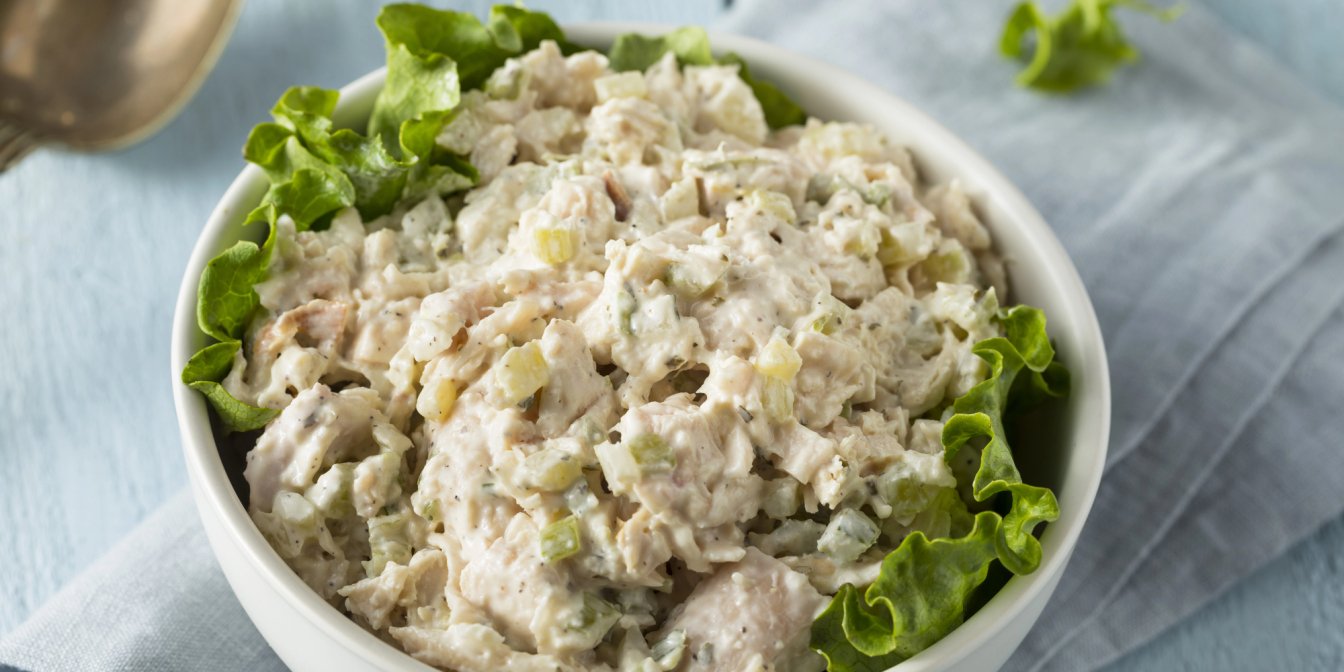 Для цього салату бери консервованого тунця шматочками в олії, але перед використанням обережно злий рідину – вона тут не знадобиться. Салат з консервованим тунцем заправляться майонезом. Ми завжди радимо робити домашній майонез — це дуже просто.