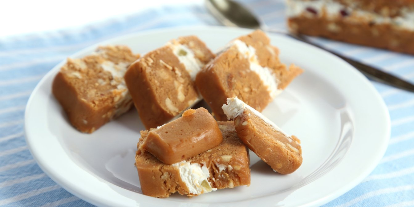 Коли щербет застигне, дістаньте його з форми, наріжте на шматочки й смакуйте.
