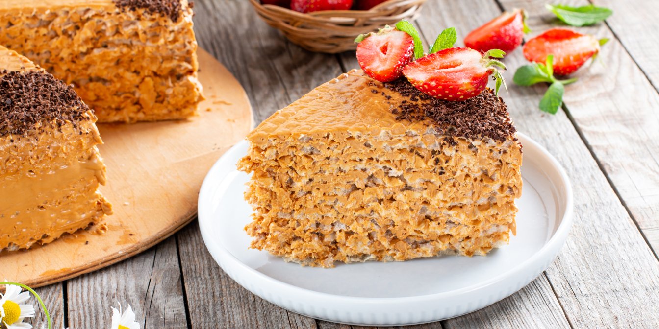 Ви самі вибираєте, скільки коржів буде в торті. Якщо не любите надто солодке, беріть більше вафель і навпаки. Для крему нам потрібне розм’якшене вершкове масло. Дістаньте його з холодильника за 40 хвилин до приготування.