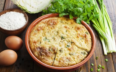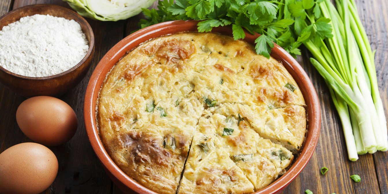 Ця запіканка схожа на пиріг з капустою. Її можна готувати як у формі, так і просто на деку. Гарячий соковитий овочевий корж — гарна ідея для основної страви або гарніру до м’яса чи риби.