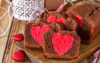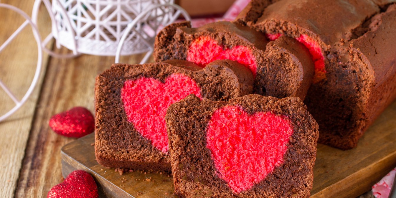Вийміть готовий кекс з духовки та охолодіть. Перед тим як подавати на стіл, наріжте скибочками, щоб сердечко було видно.