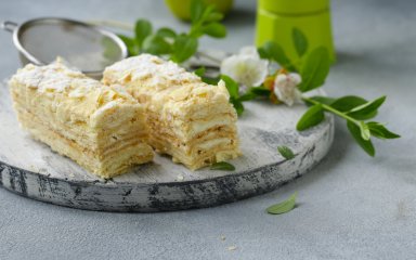 Від незліченних листкових шарів ніжного листкового тіста до вершкових хмар ванільного крему і декоративної глазурі: мільфьой, або, як його ще називають «Наполеон» чи кремовий слайс — це вражаючий десерт, гідний особливого випадку. При цьому приготувати його можна навіть на власній кухні, переконує Саллі. Доречним він буде і у вітрині вишуканої кондитерської, впевнена вона.
