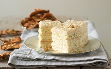 Якщо любите хрусткі торти, подивіться рецепт арахісового пляцка. Він випікається разом з меренгою і прошаровується кремом з вареного згущеного молока і масла.