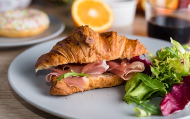 З такою чудовою основою, як свіжий круасан, можна експериментувати дуже довго, але якщо вам потрібна начинка, яка точно смакуватиме, шеф-кухар, ресторатор, ведучий шоу «На ножах» і «Пекельна кухня» Алекс Якутов радить приготувати круасан із хамоном і сиром брі.
