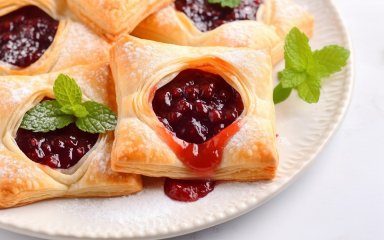 Готові слойки остудіть, злегка присипте цукровою пудрою і вкладіть у конверт ягідку.