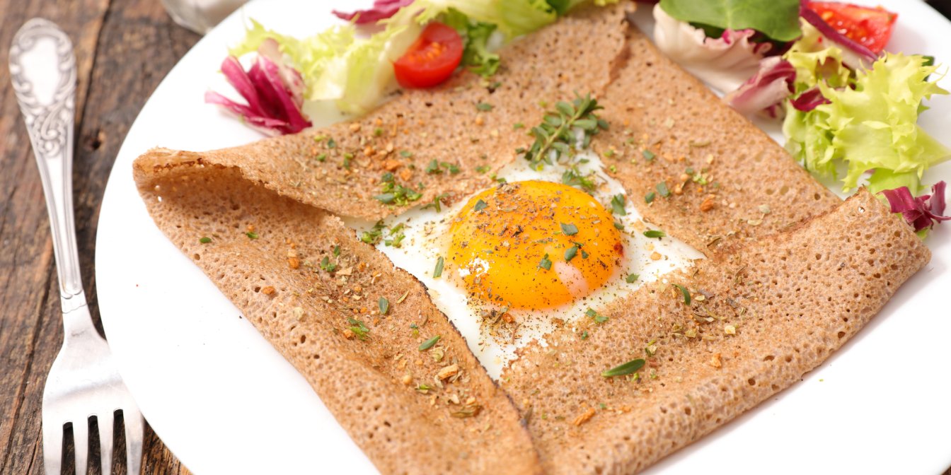 Не можете обрати, що приготувати на сніданок, яєшню чи млинці? Пропонуємо приготувати ці тонкі гречані млинці з яєшнею в середині. Додайте кілька шматочків салямі або шинки, трохи сиру і зелені — ідеальний і ситний сніданок готовий.
