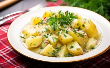 «А це точно салат?» — запитає той, хто вперше готує цю страву. Вона ж бо схожа трішки на суп, із якого «вкрали» юшку, трішки на відварну молоду картоплю, тільки з оцтом і гірчицею… Загадка, та й годі. І дуже смачна загадка! Тож берімося творити справжній австрійський генштаб… тобто австрійську кухню в кожній українській хаті!
