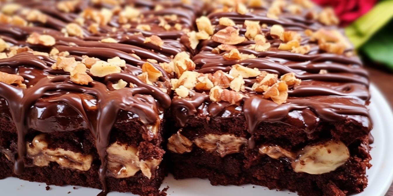Форму змастіть жиром (якщо вона не має антипригарного покриття, вистеліть її промасленим пергаментом). Вилийте у форму тісто та вирівняйте його за допомогою лопатки. За бажанням можна прикрасити горіхами.