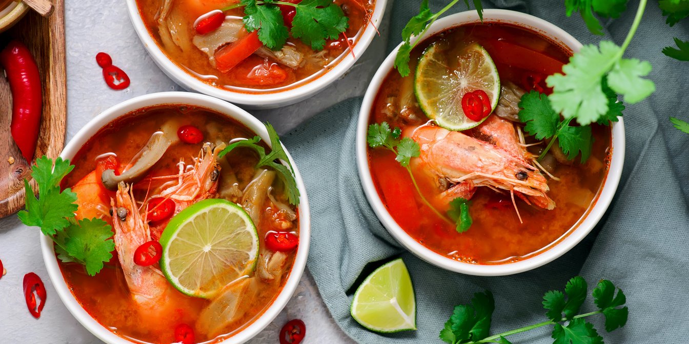 Яскраво-червоний, помірно кислий, гострий, дуже пряний — тайський суп том ям недарма вважають однією з найвідоміших у світі страв тайської кухні. Обожнюємо цей насичений гостро-кислий смак, який інколи «згладжують» кремово-шовковистим кокосовим молоком. Пропонуємо том ям за 15 хвилин з креветками!