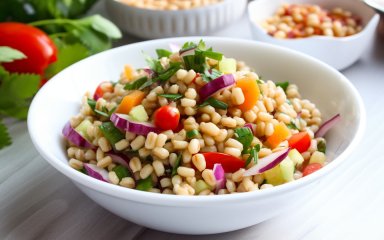 До речі, подібну кашу-салат можна приготувати і з ячної крупи, і навіть із пшона, якщо забажаєте. А наскільки ця страва ближча до каші чи салату — питання взагалі філософське!
