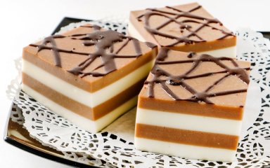 Цей десерт названо «Смугастик», адже при нарізанні його шматочками можна роздивитися білі та коричневі смужки. Це застигле в агарі молоко, какао та чорний (або молочний) шоколад. Але якщо ви схочете поекспериментувати, можна спробувати додати до молока фруктовий сік або харчовий барвник.