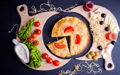 На цьому відео є два рецепти омлету-пирога. Нам сьогодні знадобиться другий варіант — той, у якому є лаваш. Це чудове рішення для тих, хто хоче з’їсти всю страву до крихти та не ділитися з пательнею! До того ж лаваш у гарячих стравах «працює» не згірше за рукав для запікання: і смаки зберігає, і поживним сокам із жодного інгредієнта випаруватися не дасть!