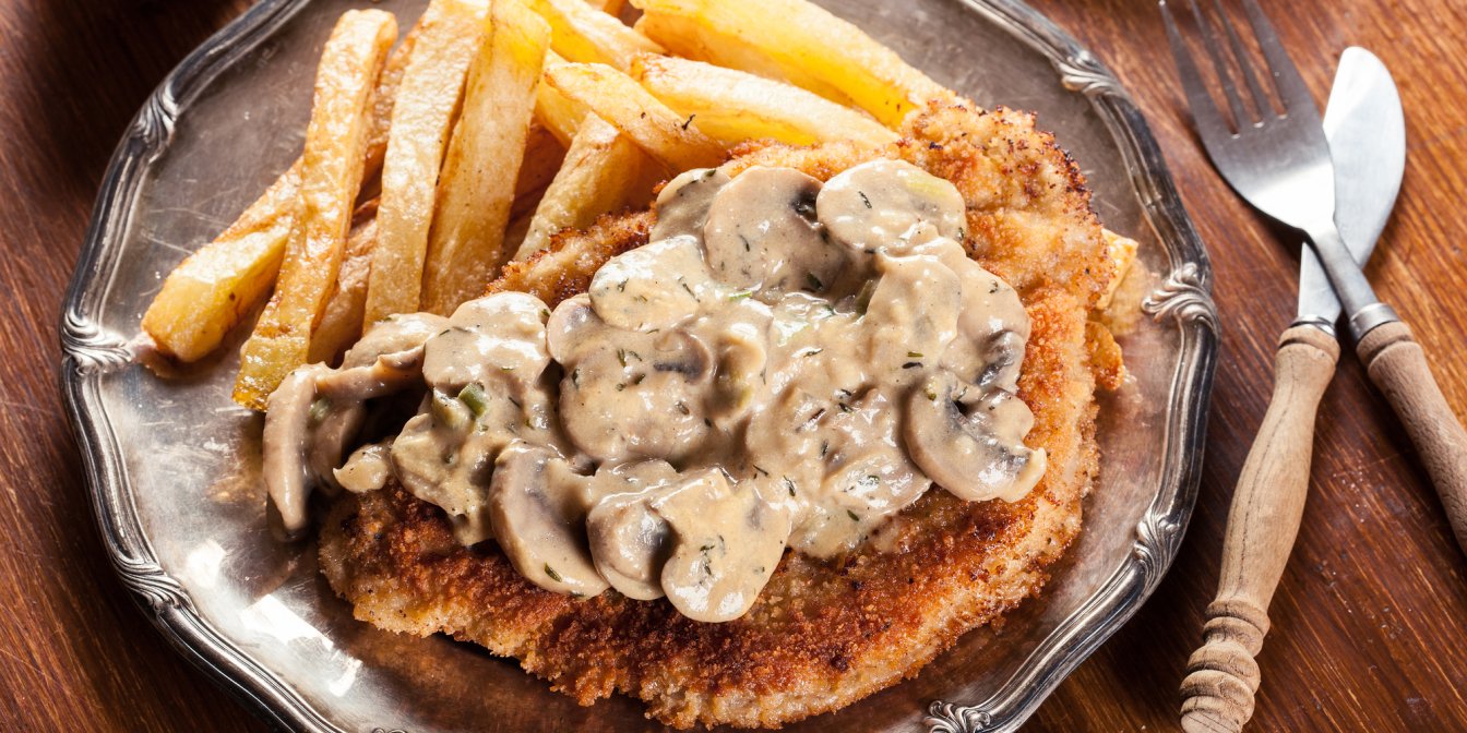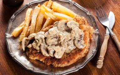 Ми підготували для вас рецепт класичного шніцеля з дуже смачним соусом із печериць.